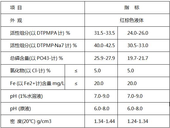 DTPMP·Na7可用作阻垢劑、螯合劑、優(yōu)良的BaSO4阻垢劑,廣泛用于冷卻水處理、過(guò)氧化物漂白的穩(wěn)定劑、洗滌助劑、市政工業(yè)清潔用水、地?zé)崴幚怼⒂吞镒韫浮?br /> 二、技術(shù)指標(biāo)